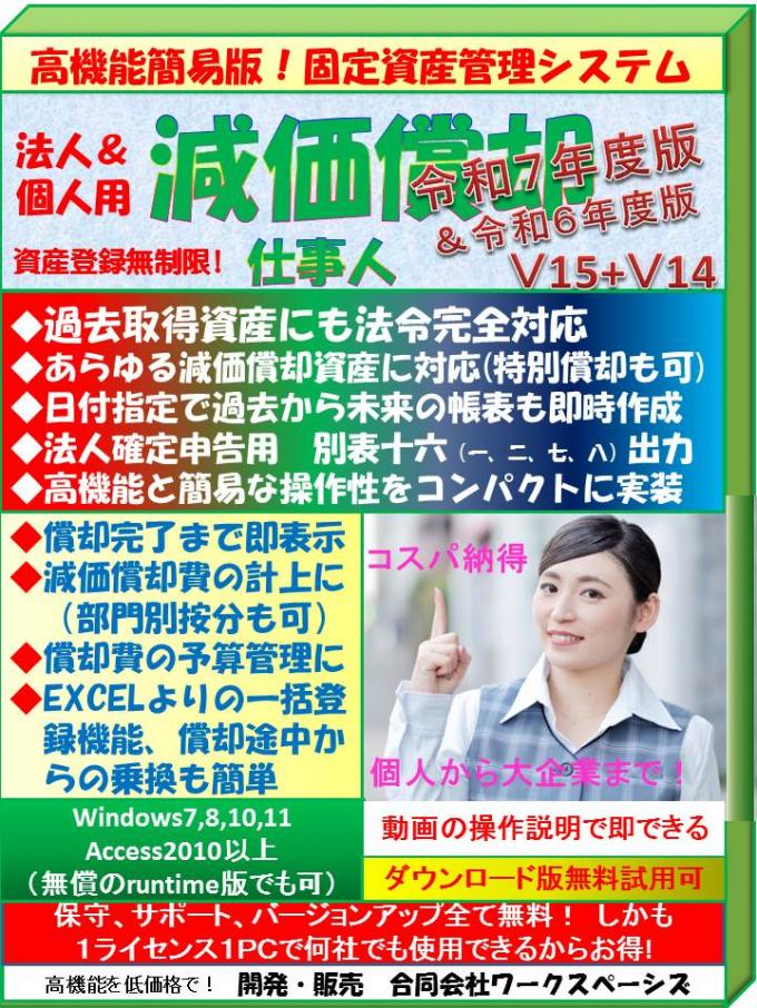 減価償却仕事人V15(令和7年4月1日以後終了事業年度用) ダウンロード
